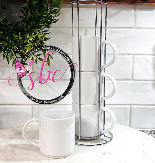 4 Stackable 8oz Coffee Mug Set with Stand